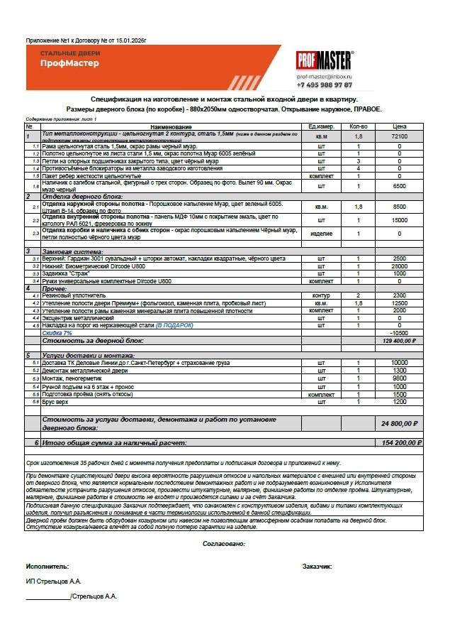 - Согласовываем смету, описываем замки и другие комплектующие.