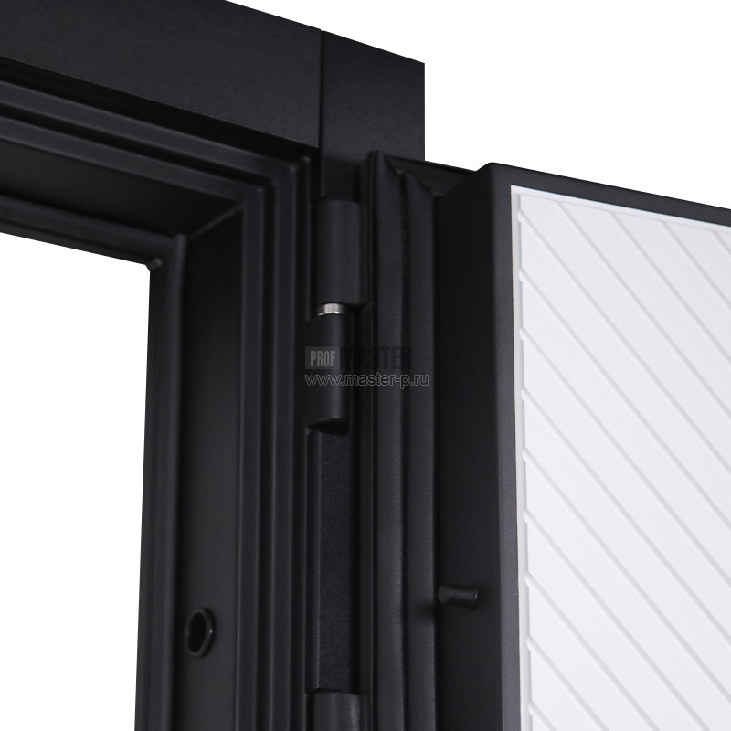 Броненакладка врезная. Штырь противосъемный (3 шт). Наличник МДФ гладкий. Рама Муар черный. |