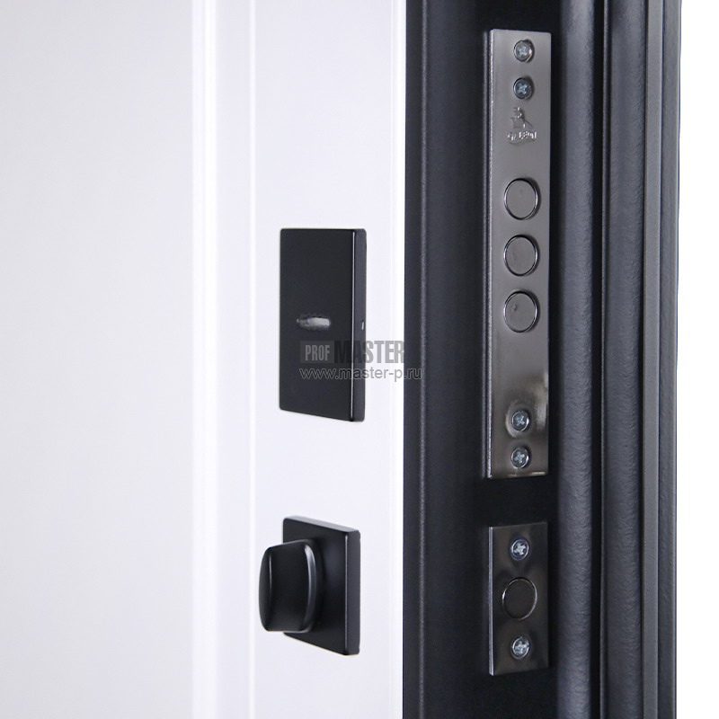 Броненакладка врезная, штырь противосъемный -3 шт., на сувальдном замке накладки со шторками автомат. Наличник с 3х сторон мдф. Эксцентрик-регулятор притвора. Порог из нержавеющей стали. |