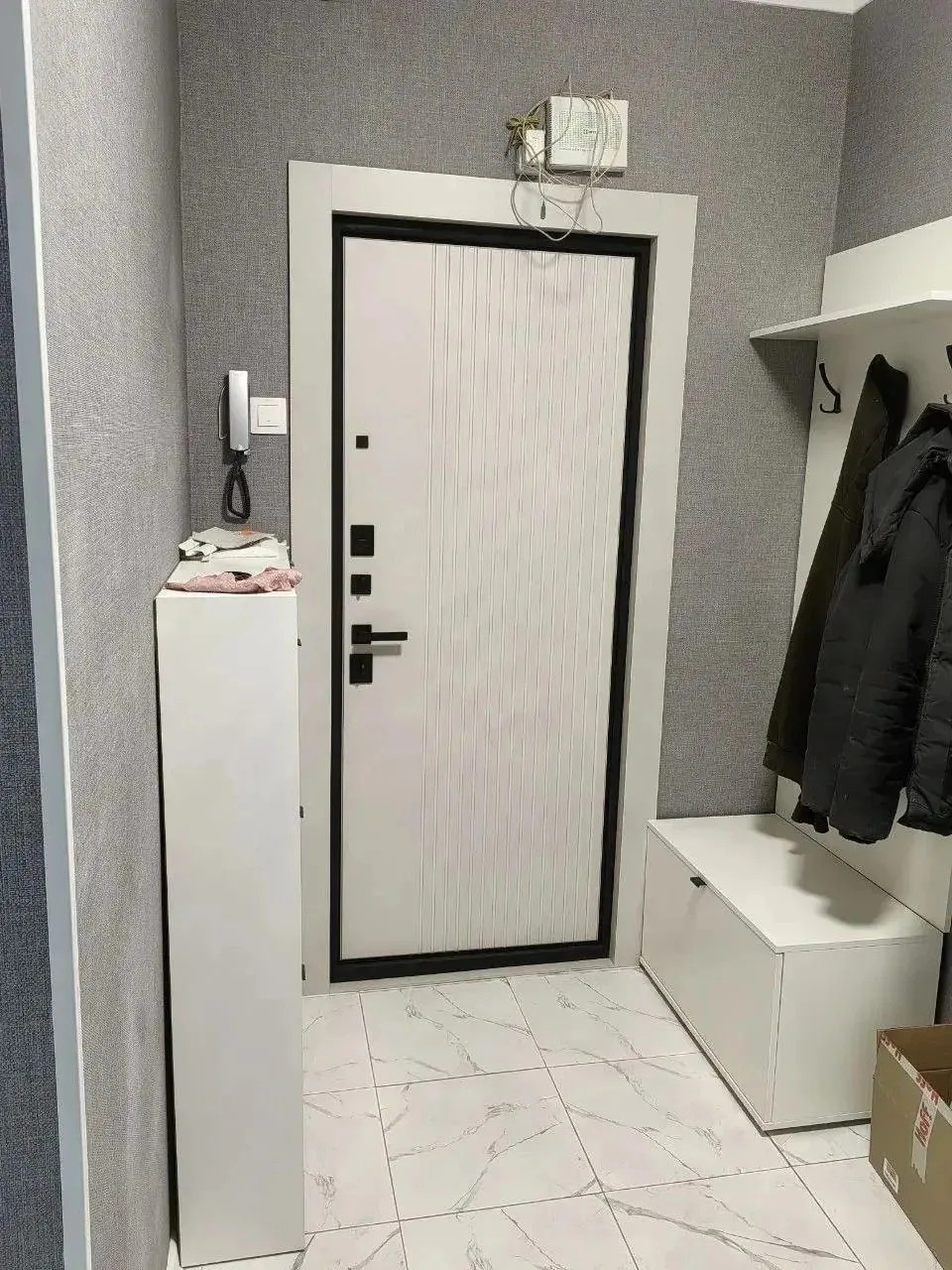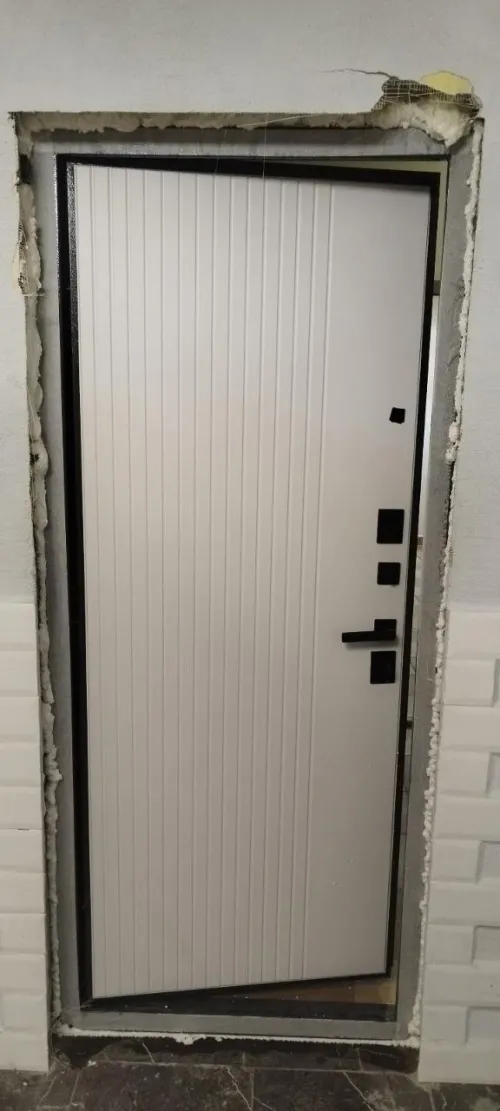 Броненакладка, штырь противосъемный -3 шт., на сувальдном замке накладки со шторками автомат. Три петли на опорном подшипнике. Заполнение полотна: Пенополистирол высокой плотности «ПСБ-С15». Наличники стальные с 3х сторон. |