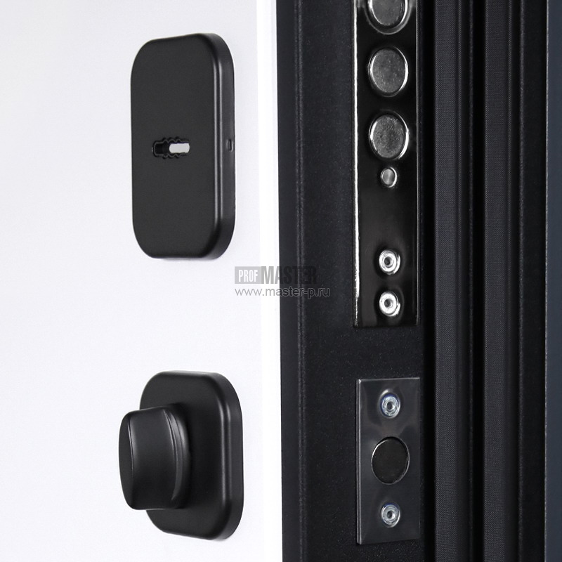 Петли на подшипнике 3шт., броненакладка врезная, штырь противосъемный 3шт., на сувальдном замке накладки со шторками автомат. Рама "черный муар". Заполнение полотна минвата Урса |