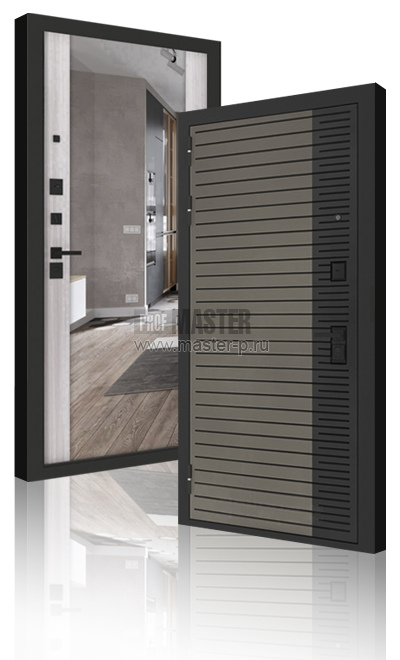 Броненакладка на цилиндрический механизм, защита замка-карман. Три петли Италия, регулируемый эксцентрик. Наличник стальной по периметру с 3х сторон. Противосъемы. |