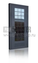 Дверь в котельную с остеклением и вентиляционной решеткой и с биометрическим замком.