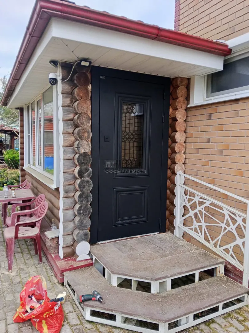 Стальная термодверь с штампованной филенкой, не подверженной коррозии. Декоративная решетка между стеклами, не требующая подкраски со временем. -