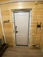 Одна из самых недорогих дверей в компании, которая была в наличии и с монтажом в течение 2х дней. Если бы заказывали под свои размеры, то процентов 30 бы накинули точно. А так дверь отличная, в идеальном состоянии, с двумя надежными замками, качественными ручками. И цвет нам сразу понравился – изнутри белая, как раз под будущий интерьер прихожей. Только дверь тяжелая, на 3х петлях держится, еще и противосъемные штыри в комплект входили, так что теперь в безопасности квартиры уверены.