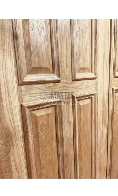 Классический дизайн филенок из массива дуба без тонировки под яхтовым лаком для уличной эксплуатации. Без наличника для установки в глубь проема.