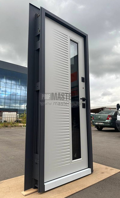 Три петли, эксцентрик на косой ригель с защитой рамы от потертостей. Шторки автомат. Порог нерж сталь. Увеличенный металлический наличник 100 мм. Броненакладка на цилиндр. |