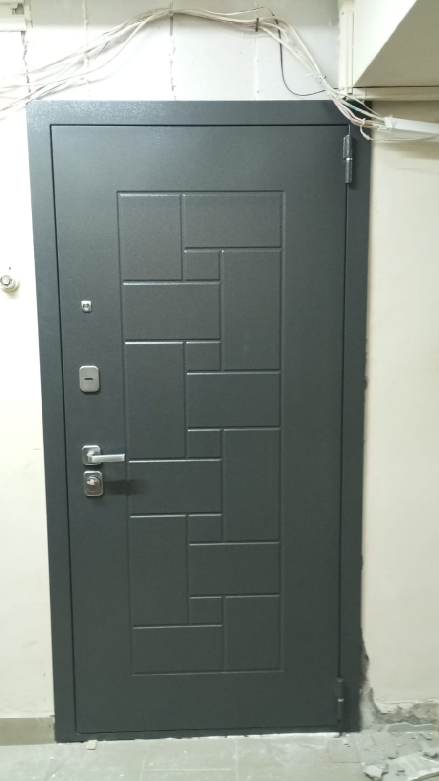 Броненакладка врезная, штырь противосъемный -3 шт., на сувальдном замке накладки со шторками автомат. Две петли на опорном подшипнике. Заполнение полотна: Пенополистирол высокой плотности «ПСБ-С15». Наличники стальные с 3х сторон. |