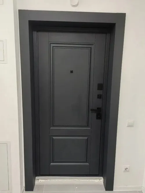 Петли Барк с регулировкой. Броненакладка врезная, штырь противосъемный -3шт., на сувальдном замке накладки со шторками автомат. Наличник с 3х сторон сталь +мдф. Эксцентрик-регулятор притвора. |