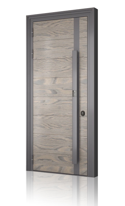 Объемный, многоуровневый наличник по периметру рамы выступает не только элементом дизайна но и значительно усложняет доступ к ригелям замка, делая входную дверь еще безопаснее.