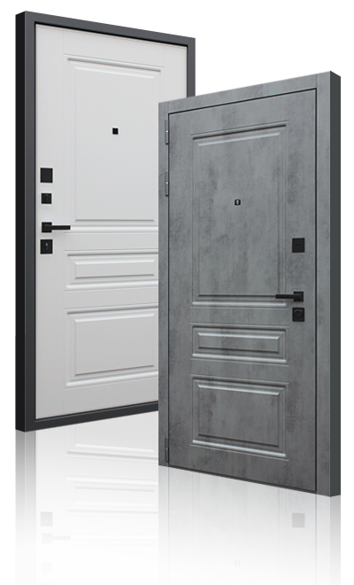 Петли Италия 3шт. Броненакладка врезная, штырь антисъемный 3 шт., на сувальдном замке накладки со шторками автомат КЛС-13. Рама "серый муар". Заполнение полотна полистерол. Эксцентрик |